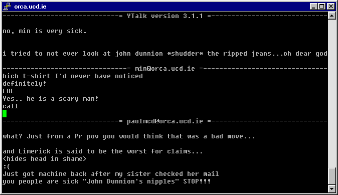 - I spent a lot of time doing ytalk with my friends. Screenshot (found on the Internet — not mine):