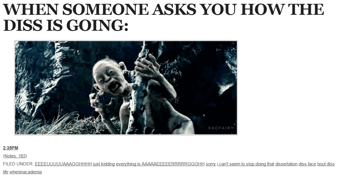 These days you’ll find better dissertation advice on Tumblr. Or at least you’ll find some comic relief from Tumblrs like When in Academia…